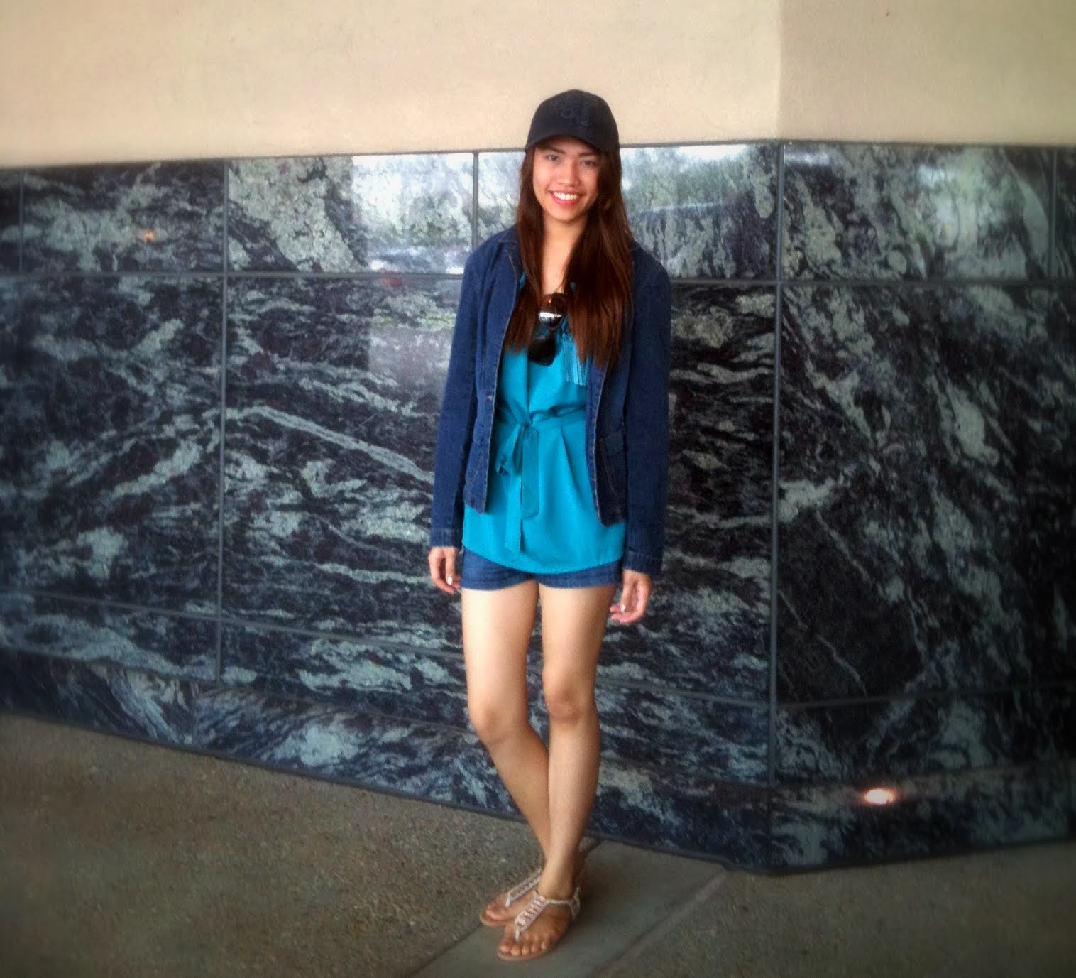 Forever 21 top || Forever 21 shorts || New York & Company denim jacket || Steve Madden flats || Calvin Klein cap || Calvin Klein shades